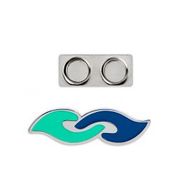 Symbolet fås som en pin med magnet-lukning som her, men også med nål-lukning og som nøglering, klistermærker og en nøglesnor med kort